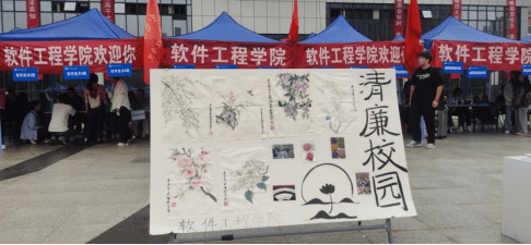 “贪念犹似蚁决堤,行端好比松傲雪”“粉身碎骨浑不怕,留得清白在人间”“两袖清风明法纪,一身正气绘宏图”……迎新场地上一幅幅素雅、富含清廉文化内涵的书法作品在迎新现场应运而生,以书法展为契机,让学生共同赏析清廉文化书法,充分发挥了清廉文化的教育、激励、凝聚、导向和约束作用,让清廉文化深入人心,向人们传递出激浊扬清的力量。