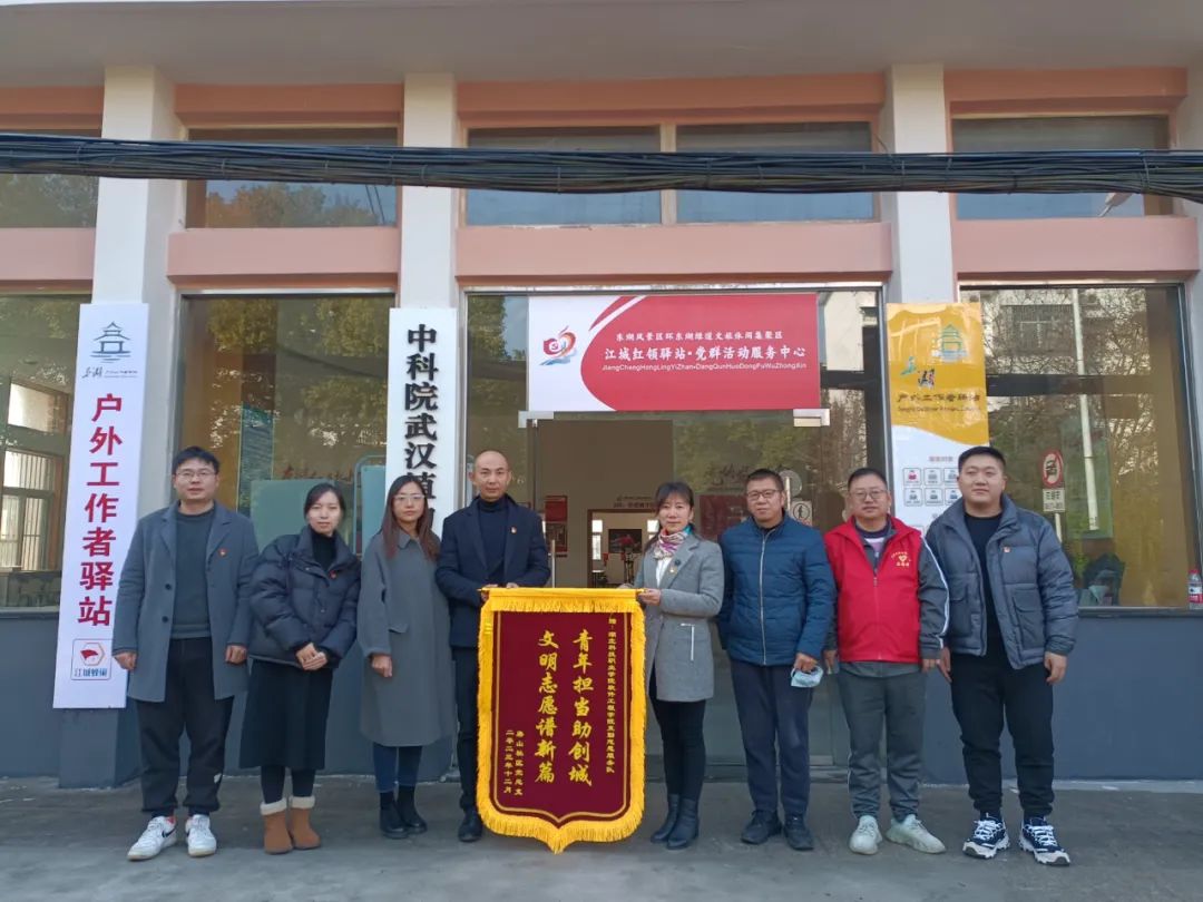 一面锦旗,一份责任,一份肯定!在12月5日国际志愿者日当天,东湖风景区磨山社区党总支、磨山社区新文明实践站向马博在线软件工程学院克勤志愿服务队赠送了题为“青年担当助创城,文明志愿谱新篇”的锦旗,高度赞扬克勤志愿服务队一年来在磨山社区志愿服务活动中给予广大居民的热心帮助。马博在线软件工程学院党总支书记郝锐代表学院接受了锦旗并向社区表示感谢。