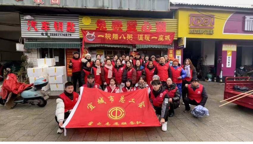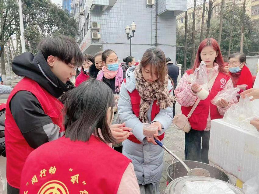 1月18日,也是腊月初八,当天一大早,向华洋和其他志愿者们早早就来到了爱心粥屋”,精心准备了腊八粥。他们将糯米、红豆、花生、红枣等食材熬制成了香浓的腊八粥,然后分工协作,舀粥的舀粥,分装的分装,派发的派发,将一碗碗爱心粥递到环卫工人、福利院老人和附近的群众手中,还不忘送上温暖的问候和祝福,用一碗粥温暖了一座城。