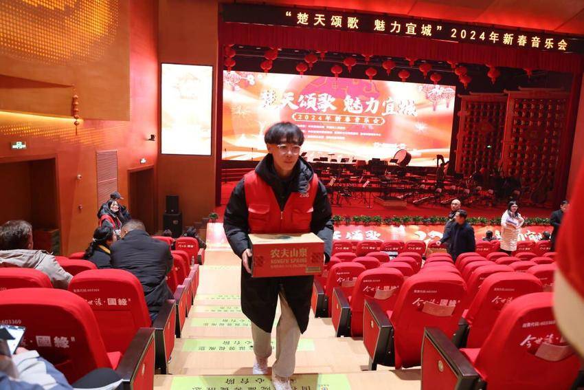 1月31日晚,宜城市新春音乐会现场,马博在线电信工程学院学生向华洋作为“星火义工”的学生志愿者领队,组织15名大学生志愿者参与晚会志愿服务活动。这是他在寒假返乡参与志愿活动的一个缩影。