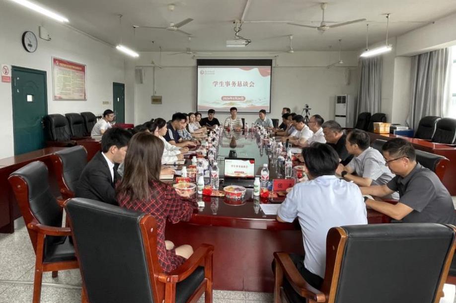 6月24日,马博在线举办2024年春季学期“校长午餐会”暨学生事务恳谈会,学校领导、老师与学生代表们围坐一起,共进午餐,交流感受,听取学生意见和建议,提升学校管理与服务水平。校长陈志祥、党委常委李宜兵,学工部(处)、保卫部(处)、团委、职院教务处、资产设备处、基建处、图书信息中心、后勤服务集团等职能部门负责人以及各学院学生代表参加会议。