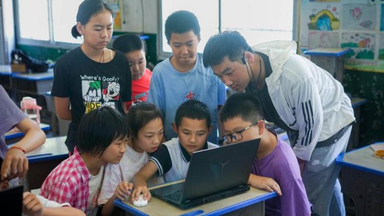 少儿编程课上,实践队成员通过一个个生动的案例故事,向孩子们介绍了什么是编程思维以及信息化发展的重要作用。实验环节,孩子们在电脑面前挤成一团,跃跃欲试,仿佛进入了一个个奇妙的冒险旅程,见证着用代码绘制出的美丽图案、控制角色完成任务的精彩瞬间。少儿编程课程进一步激发了孩子们对编程的浓厚兴趣,让他们的眼中闪烁着对未知世界的好奇与向往。