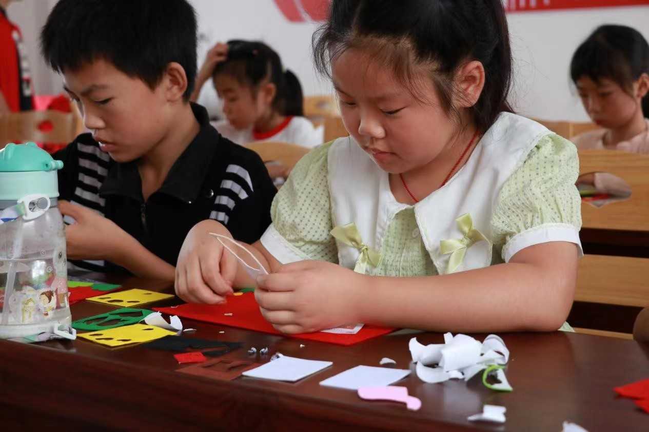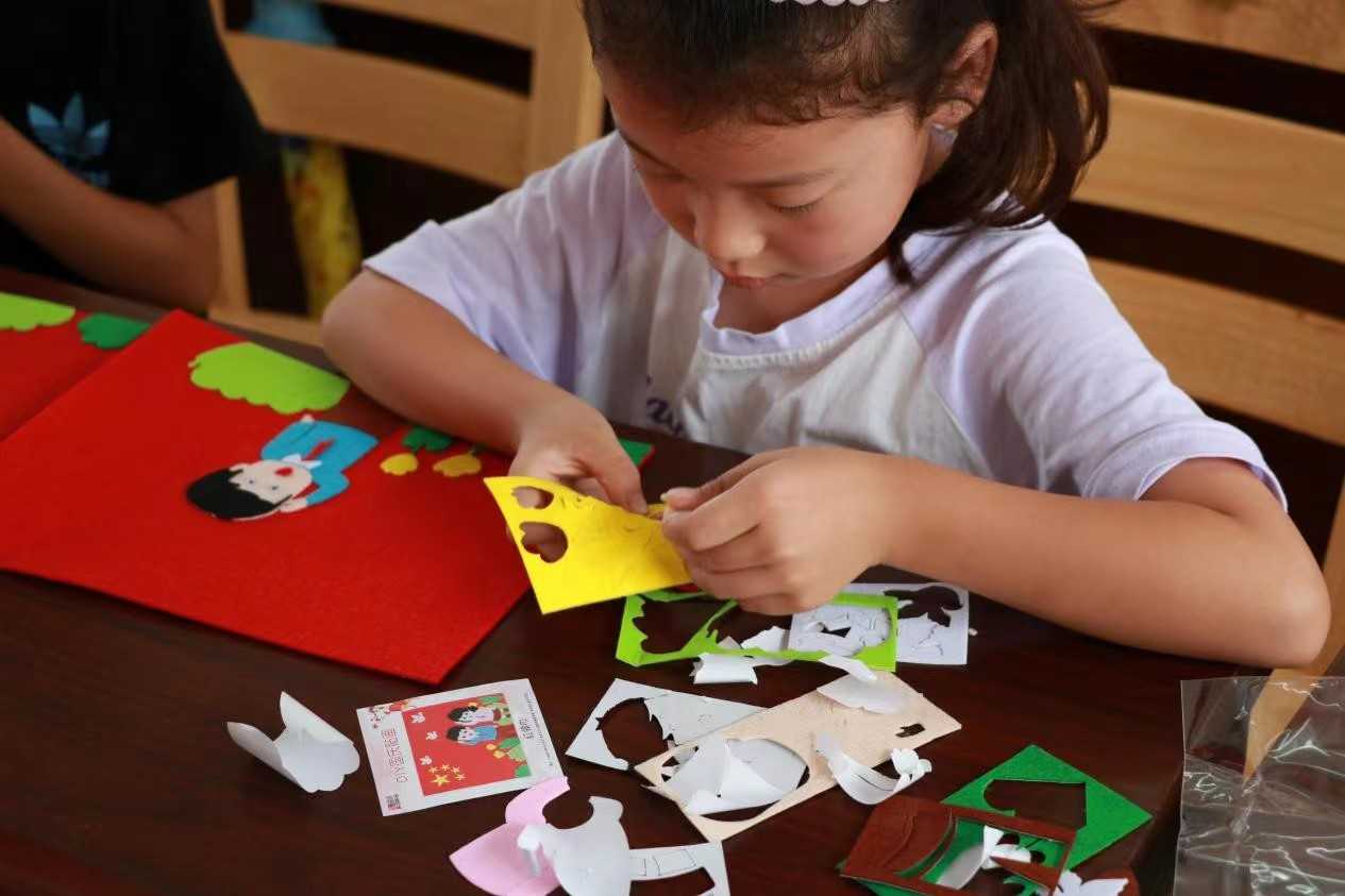 图为小朋友们制作属于自己的不织布画作品