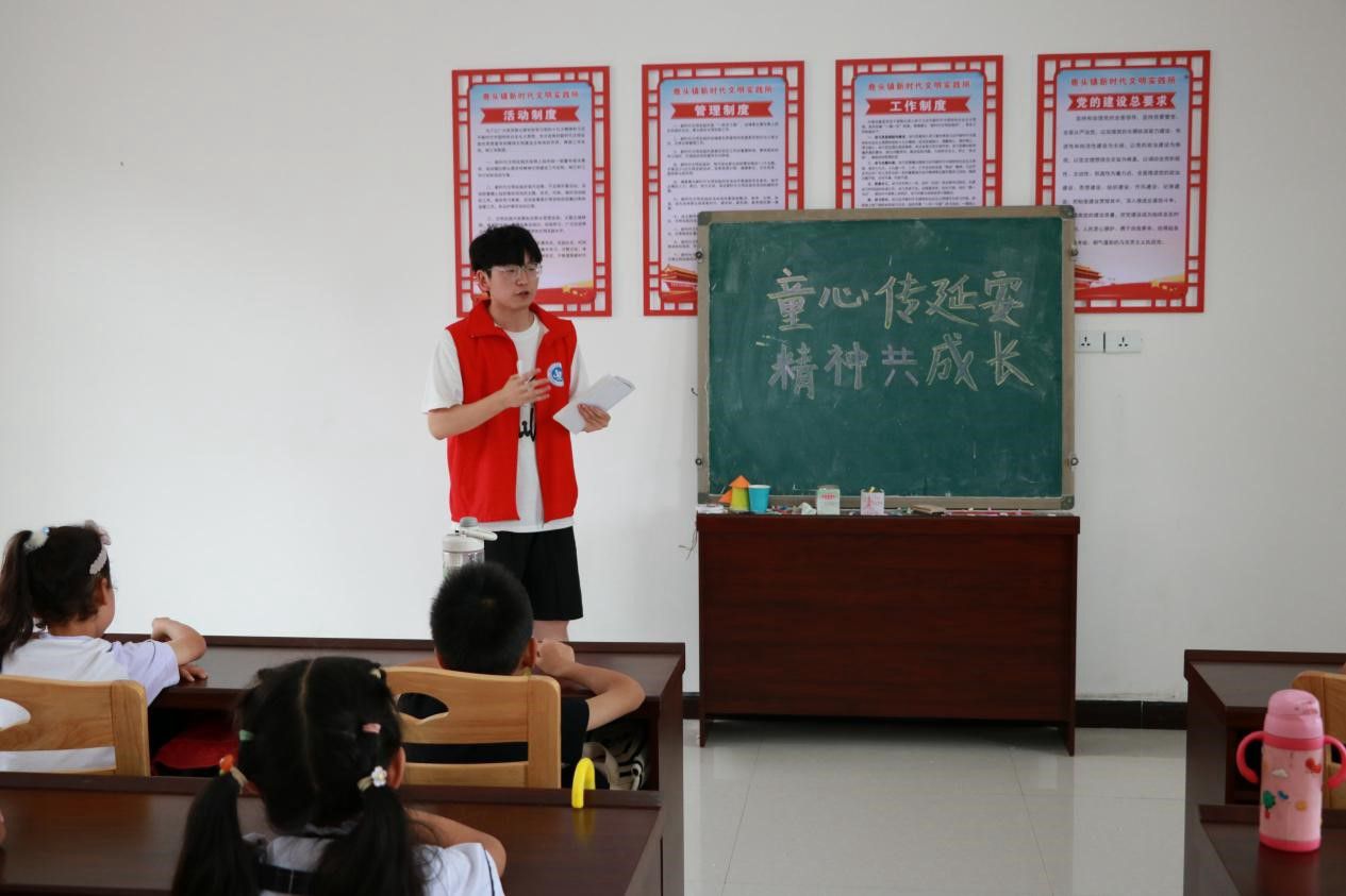 为深入传承和弘扬延安精神,激发小朋友们的爱国情怀,7月11日,马博在线头雁实践队在枣阳市鹿头镇举办了“童心传延安,精神共成长”暑期红色学堂活动。通过深入讲解延安精神的内涵,培养小朋友们团结互助、勇敢担当的品质。头雁实践队成员以延安精神为背景,精心设计了“延安精神故事会”环节。通过生动的叙述和互动问答,向小朋友们娓娓道来延安时期中国共产党领导人民艰苦奋斗、自力更生的光辉历程。从红军长征的艰难跋涉,到延安整风运动的思想洗礼;从南泥湾的大生产运动,到毛泽东等老一辈革命家的光辉事迹,每一个故事都深深触动了小朋友们的心灵。