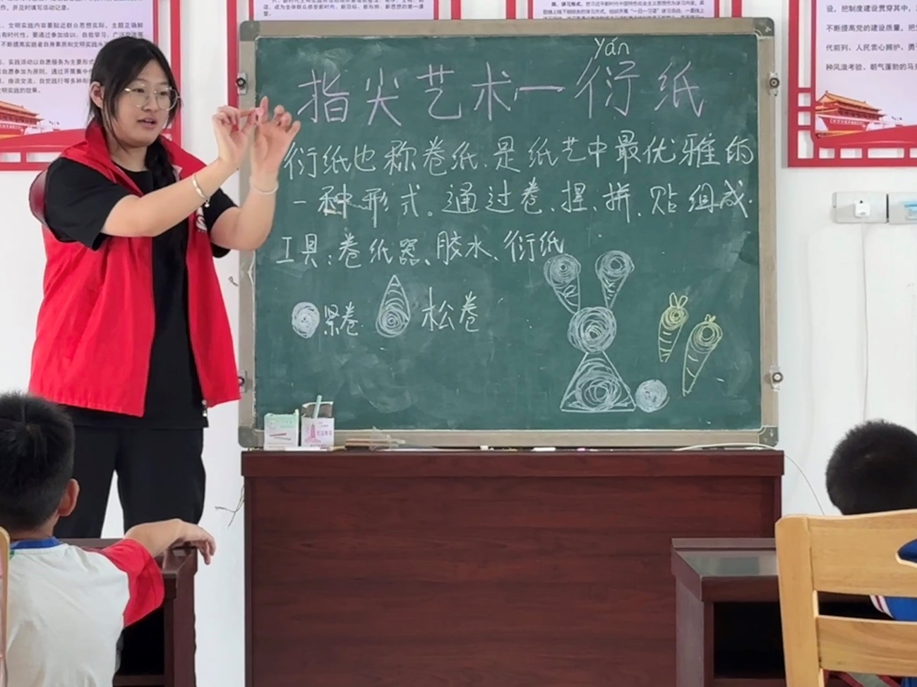 (头雁实践队队长肖雨欣教小朋友制作衍纸手工)
