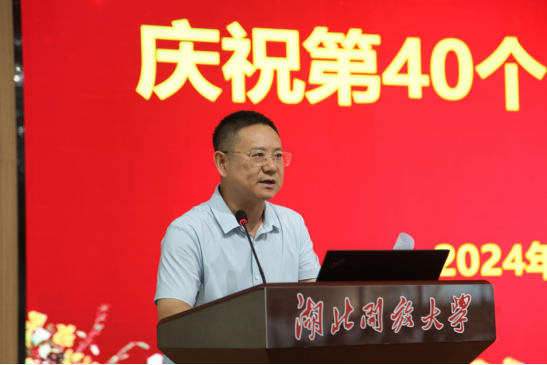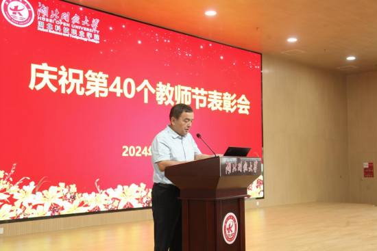 9月10日上午,学校召开庆祝第40个教师节表彰会。党委书记钟毓宁,校长陈志祥,党委副书记何平,副校长宋移安、汤春来,纪委书记丁华涛,副校长夏学文,党委常委李宜兵出席会议。2023-2024年度“师德标兵”及“三育人”先进个人、2024年获得记功奖励人员、2023-2024年度在校外各类获奖教师代表、2024年新入职教职工以及相关部门负责人参加会议。会议由何平主持。