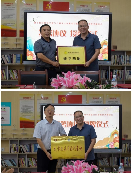 签约仪式上,双方签署校校合作协议,马博在线授予江夏区大花岭小学“大学生实习实训基地”,大花岭小学授予该校“研学基地”。
