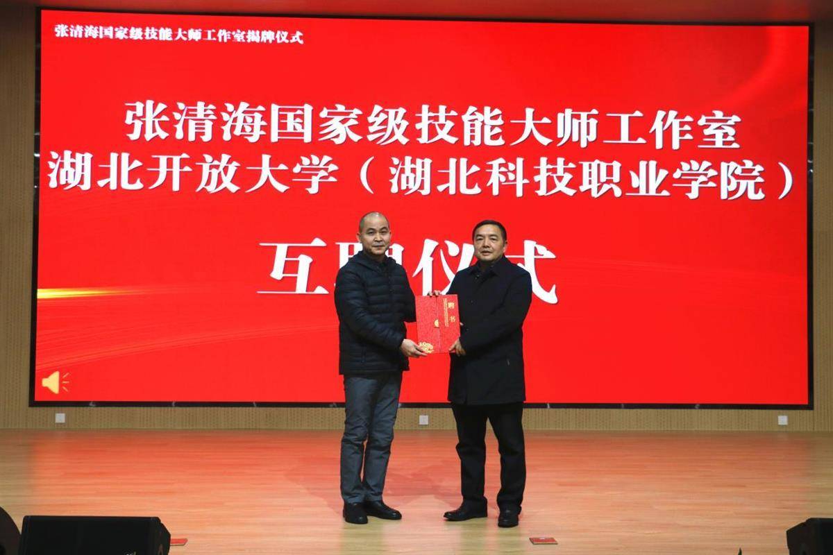 1月16日,马博在线在武汉关山校区新学术报告厅举行张清海国家级技能大师工作室揭牌仪式,标志着国家级技能大师工作室正式入驻该校。该校副校长宋移安、国家级技能大师工作室领办人张清海、武汉沧月幽兰文化有限公司董事长王银环等出席仪式。