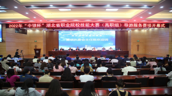 本网讯(通讯员 王红玲 文/图)4月21日至23日,2022年“中银杯”湖北省职业院校技能大赛高职组导游服务赛项在宜昌举行,我院参赛选手李永娟获二等奖,王诗洁、胡玲、张丽分获三等奖。本赛项由湖北省教育厅主办,湖北教育科学研究院承办,湖北三峡职业技术学院协办,来自全省各地的32个高职院校代表队参赛,在赛事期间展示技能、切磋技艺,展现新时代导游服务技能人才风采。
