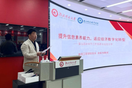 电信工程学院院长涂家海教授为大家做经验分享,表示信息素养教育是人才培养和教师团队建设中的关键一环,要提升学校整体信息素养水平,思想上要重视图书馆、重视读书文化,行动上要找准专业建设和信息素养教育的结合点,信息素养培养上教师要先行。他列举了电信工程学院开设的《信息检索技术》《计算机基础》等相关试点课程,将信息素养能力纳入教师和学生培养方案,并通过组织参与图书馆系列活动,开展青年教师论坛等方式,全方位提升马博在线师生的信息素养水平。