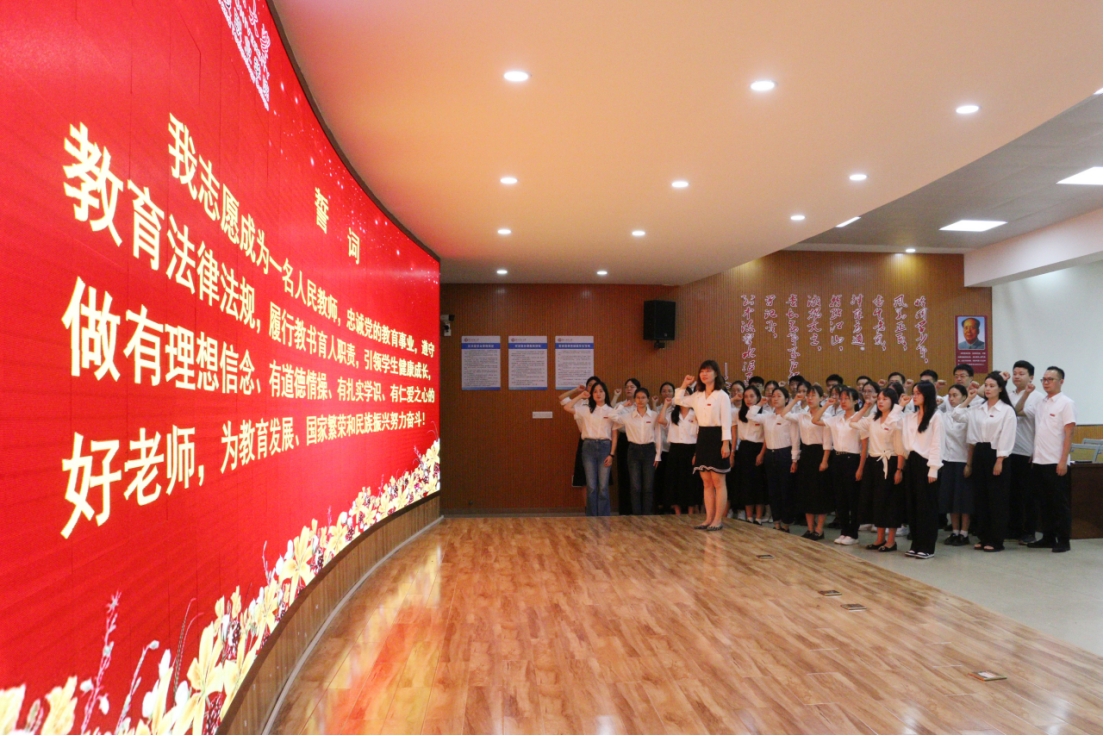 34名新进校教职工进行入职宣誓,立志为教育发展、国家繁荣和民族振兴奉献自己毕生的智慧和力量。