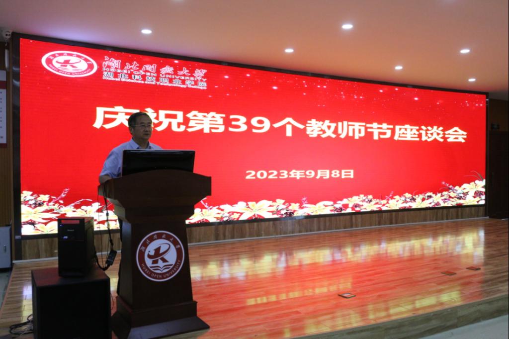 在第39个教师节来临之际,钟毓宁向全校教职工提出三点希望:一是要深刻认识在教育强国建设中肩负的光荣使命与重大责任,牢固树立“躬耕教坛,强国有我”的志向与抱负。希望全校教师热心从教,精心从教,积极推进开放教育和职业教育的融合发展,以教育数字化、产教融合、科教融汇引领教育教学改革,在立德树人、教书育人、建设高水平开放型大学的工作中不断创造新业绩,为湖北建设全国构建新发展格局先行区和学习型社会做出新贡献。二是要带头终身学习加强自身修养,争做“四有”好老师和“四个引路人”。希望全校教师心怀家国,以“传道”“授业”为责任和使命,牢固树立终身学习理念,坚持不懈用习近平新时代中国特色社会主义思想铸魂育人,带头弘扬社会主义道德和中华传统美德,以自己的模范行为影响和带动学生,敬重学问,严格要求自己,发展自己的学识和能力,不断提高教育教学质量。三是要完善强师举措,建设一支师德师风更优、教学水平更高、科研能力更强的教师队伍。要大力弘扬尊师重教社会风尚,加强师德师风建设和大学文化建设;要引育用并举,加强教师队伍建设,帮助教师在教学、科研、社会服务中打造过硬本领;要深化教师管理综合改革,做好教师精准服务,引导教师积极投身教育改革实践、人才培养和社会服务。