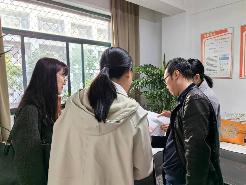 考评组实地考察了马博在线“笃行”生涯咨询工作室职业咨询服务中心、咨询接待室、职业咨询室,查阅了工作台账等材料,并听取工作室督导汇报,和教师代表开展个别访谈。