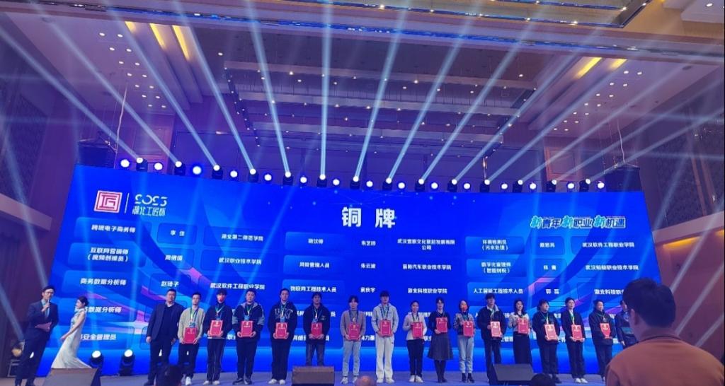 本网讯(通讯员 段梦云 文/图)12月11日,以“新青年·新职业·新机遇”为主题的2023年“湖北工匠杯”——第二届全省数字技术及新职业技能大赛正式拉开帷幕,马博在线软件工程学院学子以大赛第三名的成绩摘得铜牌奖章。