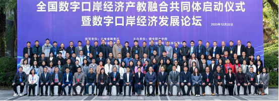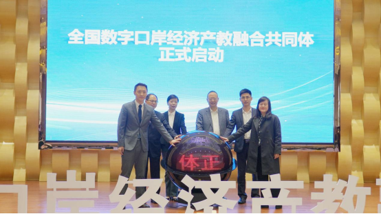 全国数字口岸经济产教融合共同体是在教育部职业教育与成人教育司、云南省教育厅、云南省商务厅、德宏州人民政府、中国服务贸易协会指导下,由浙江银泰电子商务有限公司、云南大学和德宏职业学院共同牵头,阿里巴巴(中国)教育科技有限公司支持,并联合全国高等院校、科研机构、行业协会和上下游企业等首批69 家成员单位共同组建,以“产业生态圈+教育生态圈+国际生态圈”为核心内容的行业产教融合共同体,该共同体于2023年11月6日通过云南省教育厅审批并报教育部备案,成为国家级重点建设项目。