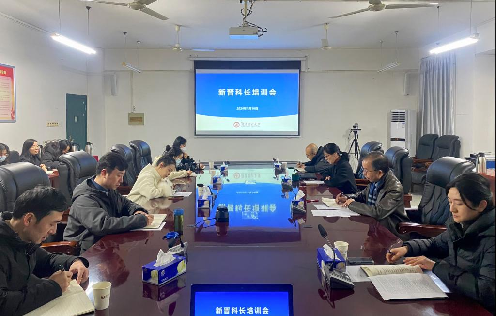 本网讯(通讯员 高杨舒 文/图)为进一步助力新晋科长在新岗位上蹄疾步稳、立正致远,培养和造就一支勤勉、务实、高效、廉洁的科级干部队伍,1月16日上午,学校组织召开新晋科长培训会。副校长汤春来,纪委副书记、监察专员办公室主任李智慧以及人事处、教师工作部相关人员出席会议,新晋26名科长参加培训。会议由人事处处长张文捷主持。