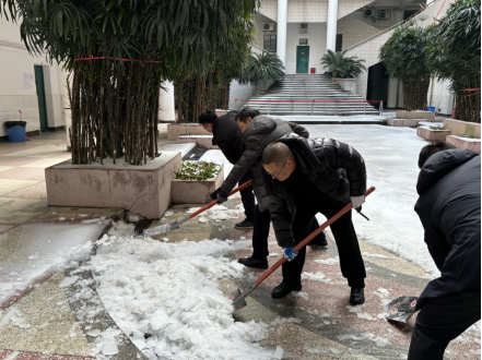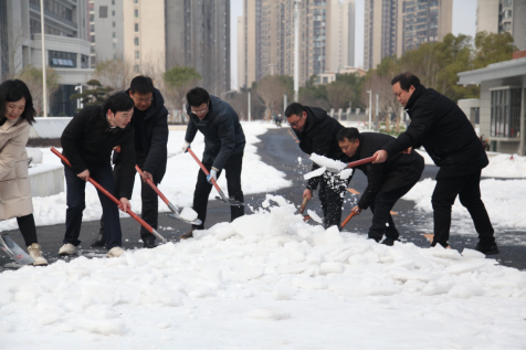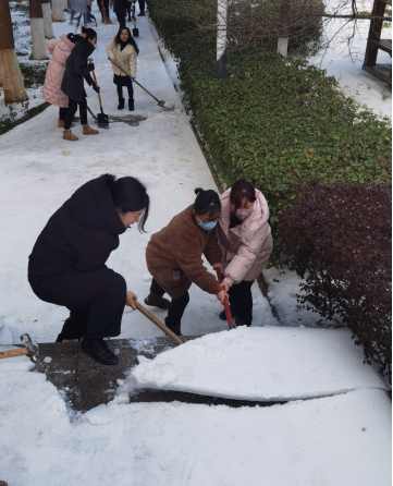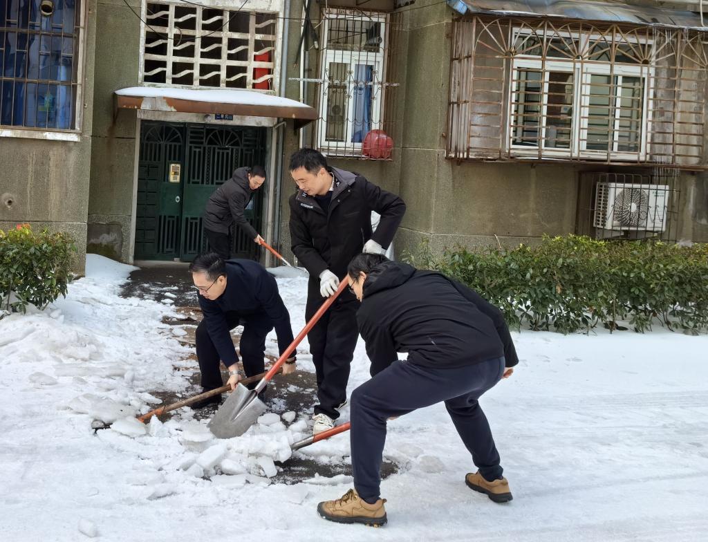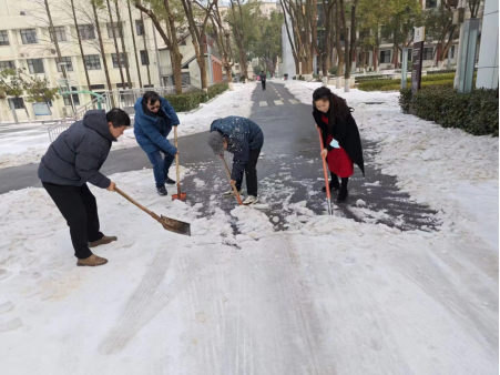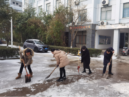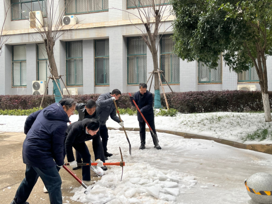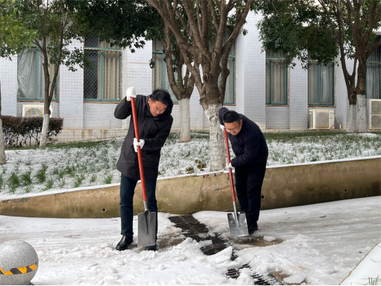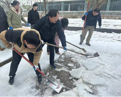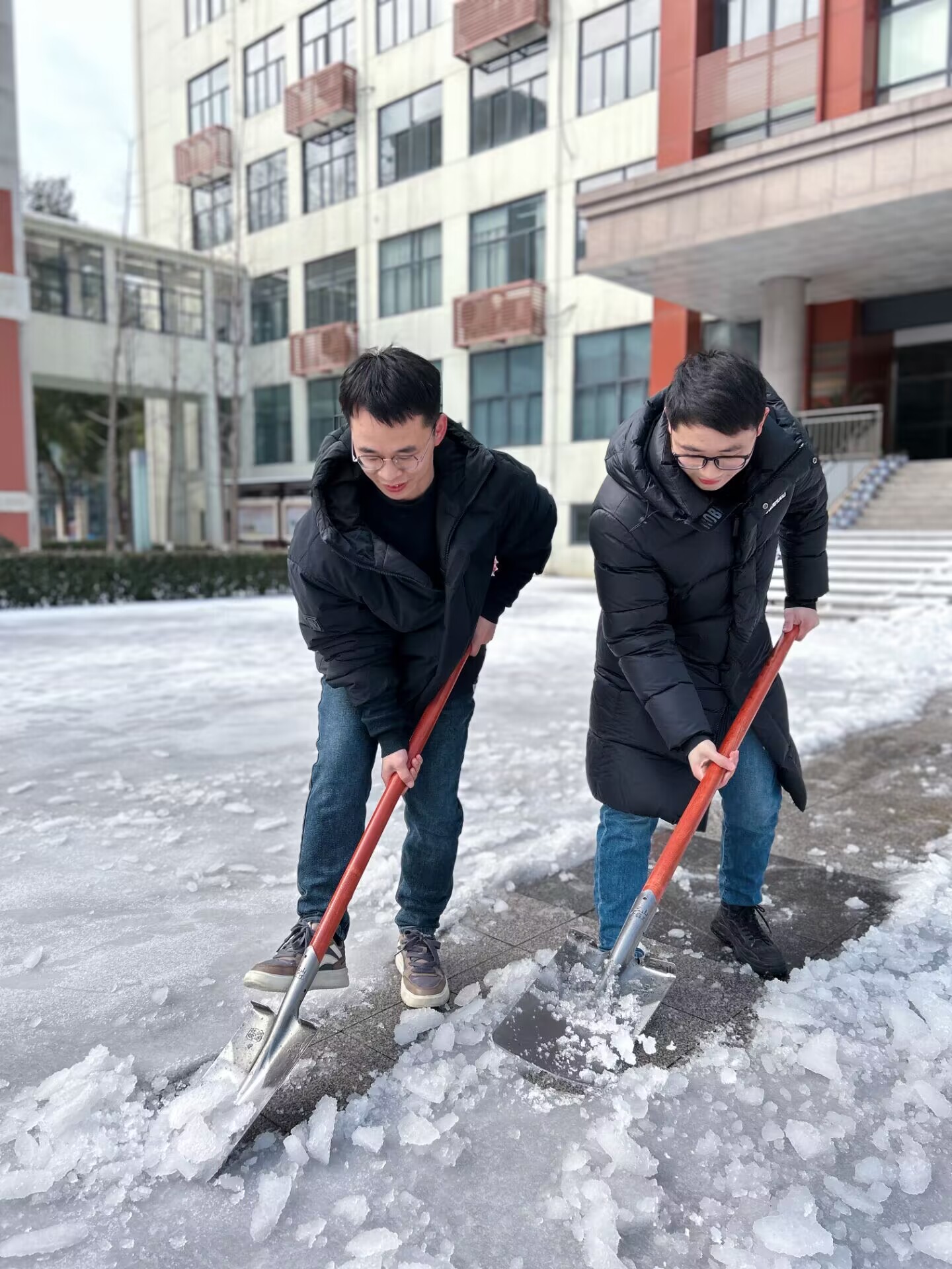 本网讯(通讯员 刘捷/文 各单位/图)近日,伴随着新一轮的低温雨雪冰冻天气来袭,校园内道路积雪结冰严重。开学第一天,学校领导、广大党员干部、教师、辅导员、后勤保卫人员“以雪为令”“迎寒而上”,全力以赴参与到铲冰除雪保畅通攻坚战中,用身体力行的劳动呈现出热火朝天的别样风景,用热辣滚烫的行动为师生开辟出一条条“平安路”“暖心路”。