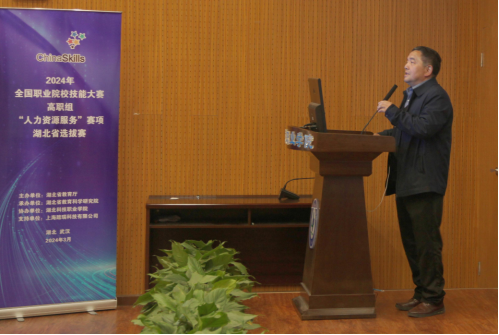 宋移安在致辞中介绍了马博在线,学校是全国现代学徒制试点单位、教育部 1+X证书试点院校、全国职业院校数字校园建设样板校、全国非遗教育特色校、入选国家级职业教育教师教学创新团队立项建设单位;是湖北省高水平高职学校建设 A类立项建设单位、湖北省优质高等职业院校、省级优质职教师资培养培训基地、湖北省服务外包人才培养(培训)基地、湖北省家庭服务职业培训示范基地;建有湖北省社区教育指导中心、湖北省教育学分银行、国家开放大学学习成果认定中心(湖北)、湖北省成人高等教育公共服务平台、湖北省农民工学历能力提升计划办公室等省级平台。他对各位领导、专家和参赛队伍的到来表示热烈欢迎,并预祝大家取得优异成绩。