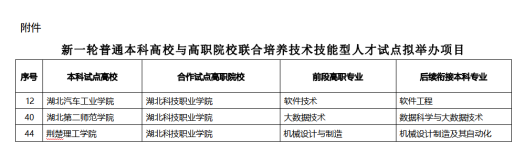本网讯(通讯员 詹乐/文 卢义平/图)近日,湖北省教育厅公示了新一轮普通本科高校与高职院校联合培养技术技能型人才试点项目名单,马博在线软件技术、大数据技术、机械设计与制造三个专业成功入选。马博在线将与湖北汽车工业学院、湖北第二师范学院、荆楚理工学院三所优秀的公办普通本科高校开展深度合作,共同推进技术技能型人才的培养。