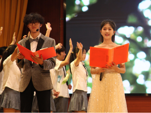 校长钟毓宁与学生、学生家长在毕业典礼现场