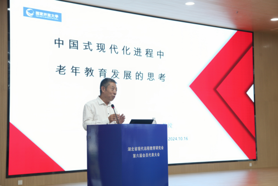 讲坛还邀请到了曾任国家开放大学党委副书记、国家老年大学校长的刘臣教授。刘臣以“中国式现代化进程中老年教育发展的思考”为题向大家解析了我国人口结构变化的大势与相应的国家政策环境,阐述了新时代老年教育的重大意义、老年教育发展的现状与问题,并结合老年教育的新理念探讨了老年教育的新发展与新任务。他鼓励大家把握转型机遇,建设老年教育智库,开展理论研究、政策研究、实践研究,并积极探索老年教育课程与资源标准建设,教学与服务评价方式、管理与合作运行机制,助力老年教育高质量发展。