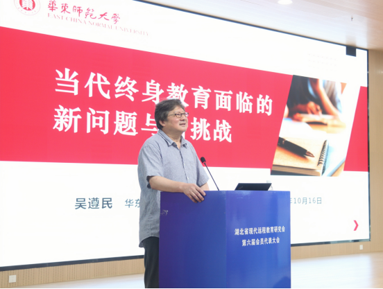 华东师范大学二级教授、博士生导师吴遵民以“当代终身教育面临的新问题和新挑战”为题进行讲授。他指出当下终身教育面临三大挑战与五大问题,并引领大家从国家化、本土化、立法化反思发展现状,剖析基本概念与内涵以把握规律。从终身教育与学习关系界定、目标探讨与学习型社会建设、学分银行建设、全民终身学习教育体系构建、老年教育深化这五个方面分析实践心得、直追前沿理论、思索未来方向。他表示教育现代化不仅是技术和信息现代化,更需思想、观念、意识以及方法现代化,鼓励大家进行多元思考,在终身教育思潮推进中积极进取、大胆改革。