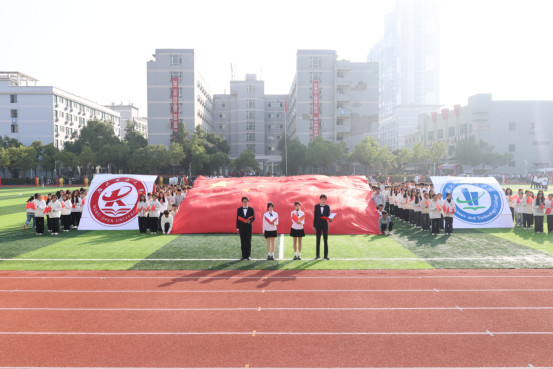 入场式结束后,全体肃立,进行了庄严的升国旗、奏国歌仪式。