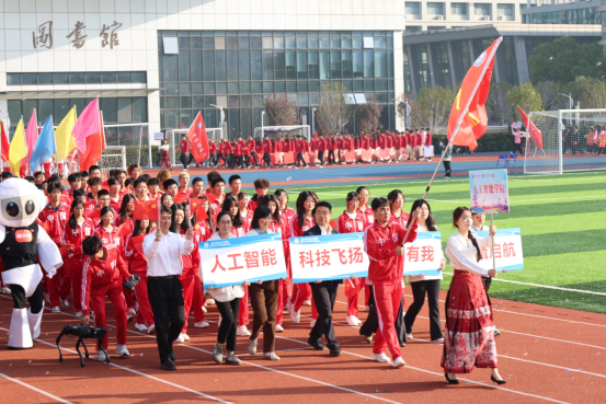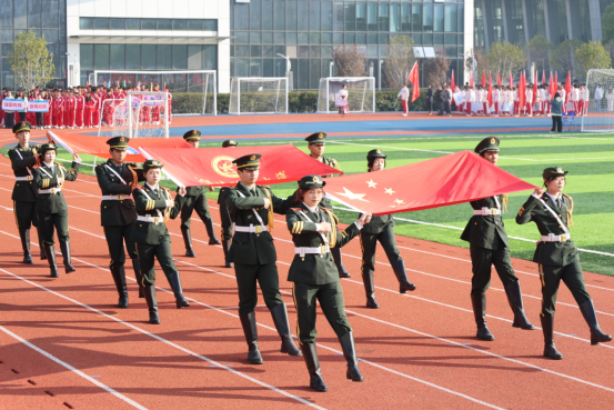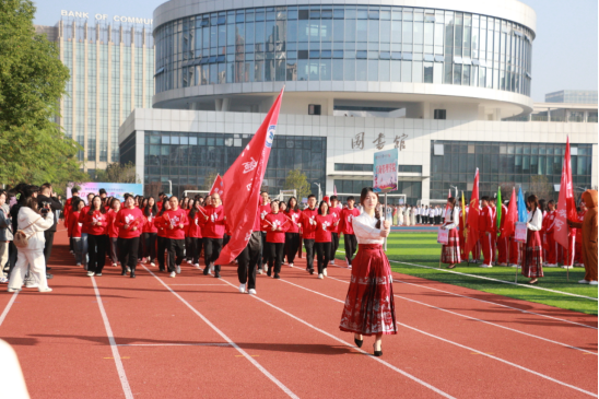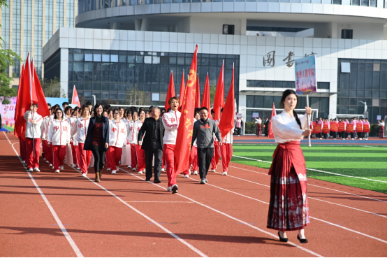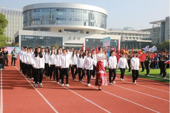 伴随着激昂的旋律,国旗方阵、校旗方阵、各学院运动员代表队以及教职工运动员代表队依次入场。他们气宇轩昂,精神抖擞,踏着整齐而矫健的步伐昂首阔步走过主席台,用铿锵有力的口号展示着学校师生“立德、树人、笃学、尚行”的精神风貌。