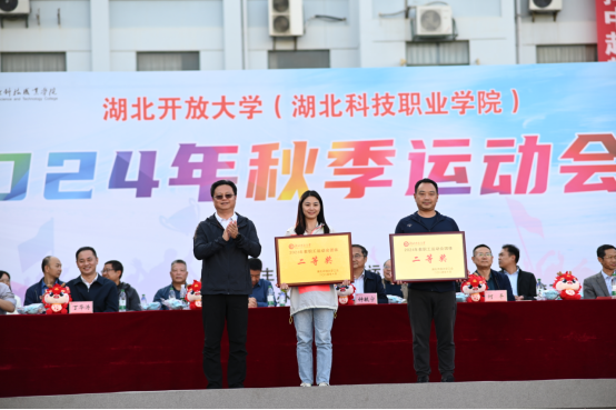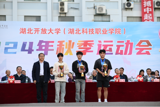 经济贸易学院代表队在比赛过程中表现出积极向上、道德高尚的精神风貌,展现出了团结协作、勇攀高峰的精神,获“体育道德风尚奖”;软件工程学院代表队在开幕式入场时步伐整齐,精神饱满,口号嘹亮,充满活力,获“阵容豪迈奖”;艺术创意学院代表队在文体节目风采展示环节精心策划、主动作为、富有创新精神,获“最佳表演奖”。工商管理学院、人工智能学院、机电工程学院分别夺得团体总分前三名;人工智能学院、工商管理学院、机电工程学院分获男子团体总分前三名;工商管理学院、人工智能学院、机电工程学院分获女子团体总分前三名。校领导向获奖单位和个人颁发了奖杯、奖牌和荣誉证书。