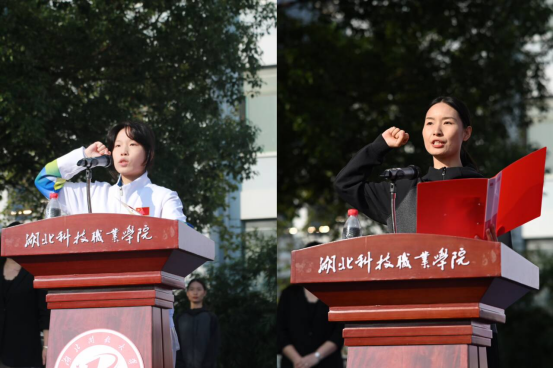 2023级工商管理学院胡靖同学代表运动员宣誓,在比赛过程中将严格遵守比赛规则,尊重裁判、尊重对手、赛出水平、赛出风采。
