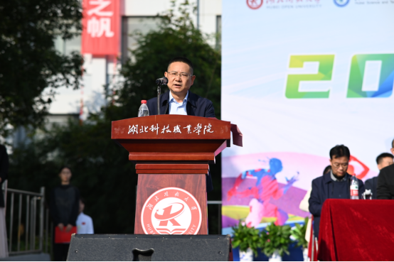 夏学文在闭幕式上致辞。他表示,这场运动会是对我们校园文化的一次生动诠释。它展示了大学生的青春活力和积极向上的精神风貌,也体现了我们校园文化的多样性和包容性。在这里,我们共同见证了体育精神与技能追求的完美结合,感受到了知识与力量的交融与碰撞。闭幕不落幕,运动不止步,展望未来,我们期待每一位同学都能将运动会中展现出的拼搏精神和团队精神带入到日常的学习生活中去。携手并进,共同书写属于自己的青春篇章。