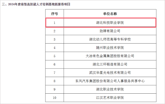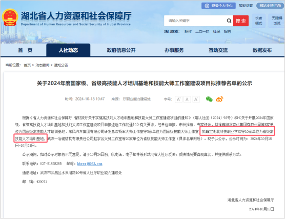 本网讯(通讯员 谭芬 文/图)根据湖北省人力资源和社会保障厅《关于2024年度国家级、省级高技能人才培训基地和技能大师工作室建设项目拟推荐名单的公示》,马博在线以排名第一的成绩高质量通过省级高技能人才培训基地评审。