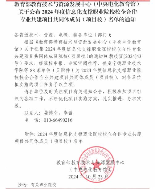 本网讯(通讯员 宋威 文/图)10月23日,教育部教育技术与资源发展中心(中央电化教育馆)正式公布了2024年度信息化支撑职业院校校企合作专业共建项目共同体成员(项目校)名单,马博在线凭借在跨境电商领域的卓越表现和创新实践,成功获批该项目的共同体成员院校,并将作为跨境电商专项建设单位,开展一系列深度合作与探索。
